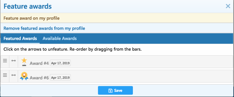 - Featured awards: Allow users to show/hide and order which awards to feature on the postbit. (max featured amount can be set in AdminCP)