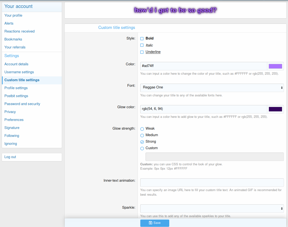 - Can manage various options for avatar frames, fonts, sparkles, and postbit presets