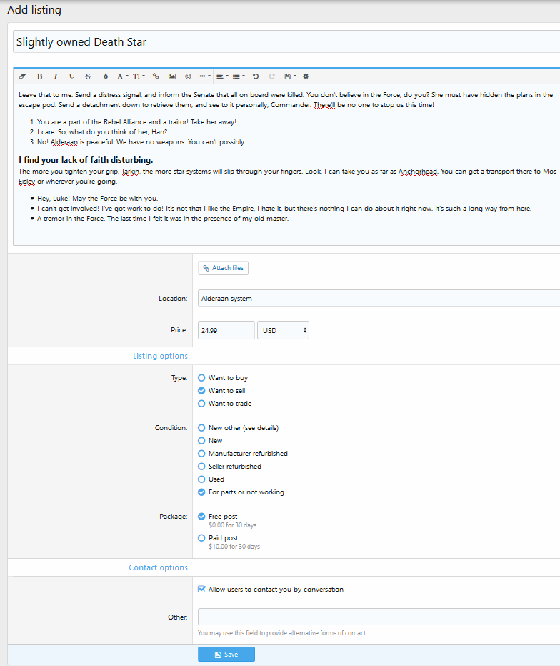 This add-on allows your users to list items for sale and trading. In addition to this, it also offers functionality to monetize these listings.