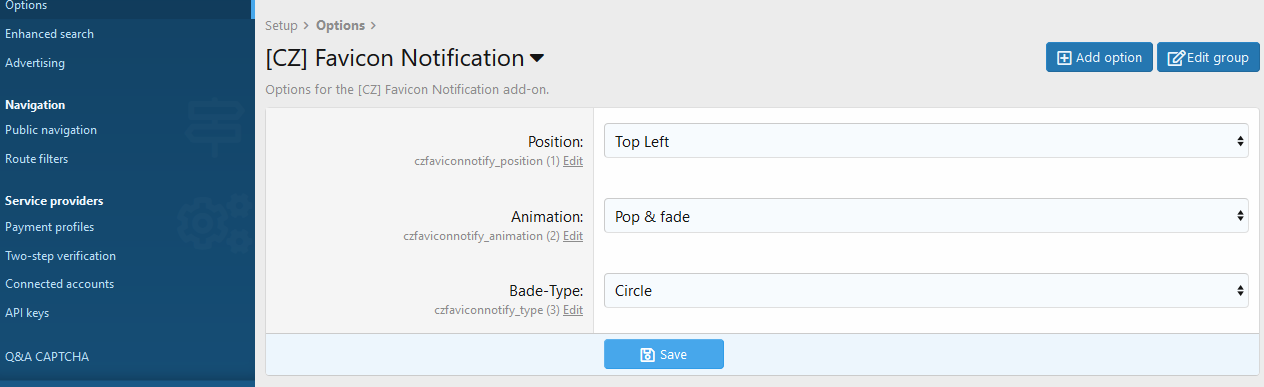 - Configure the Add-On under ACP -> Setup -> Options -> [CZ] Favicon Notification