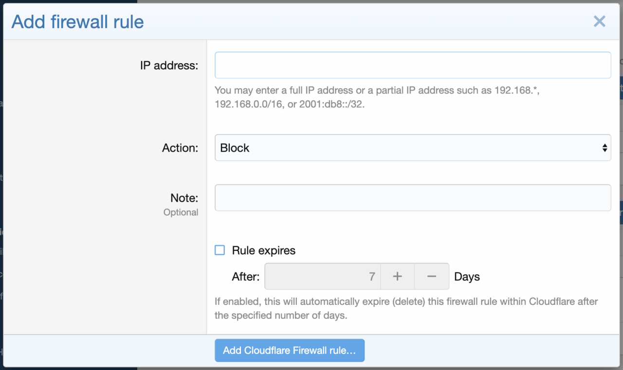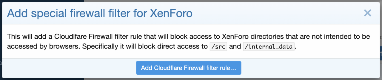 Everything is available from within XenForo (you do not need to go to Cloudflare for things) via the Cloudflare API. This allows you give admins permission to do certain things (for example block IP addresses within Cloudflare without giving them access to your Cloudflare account).