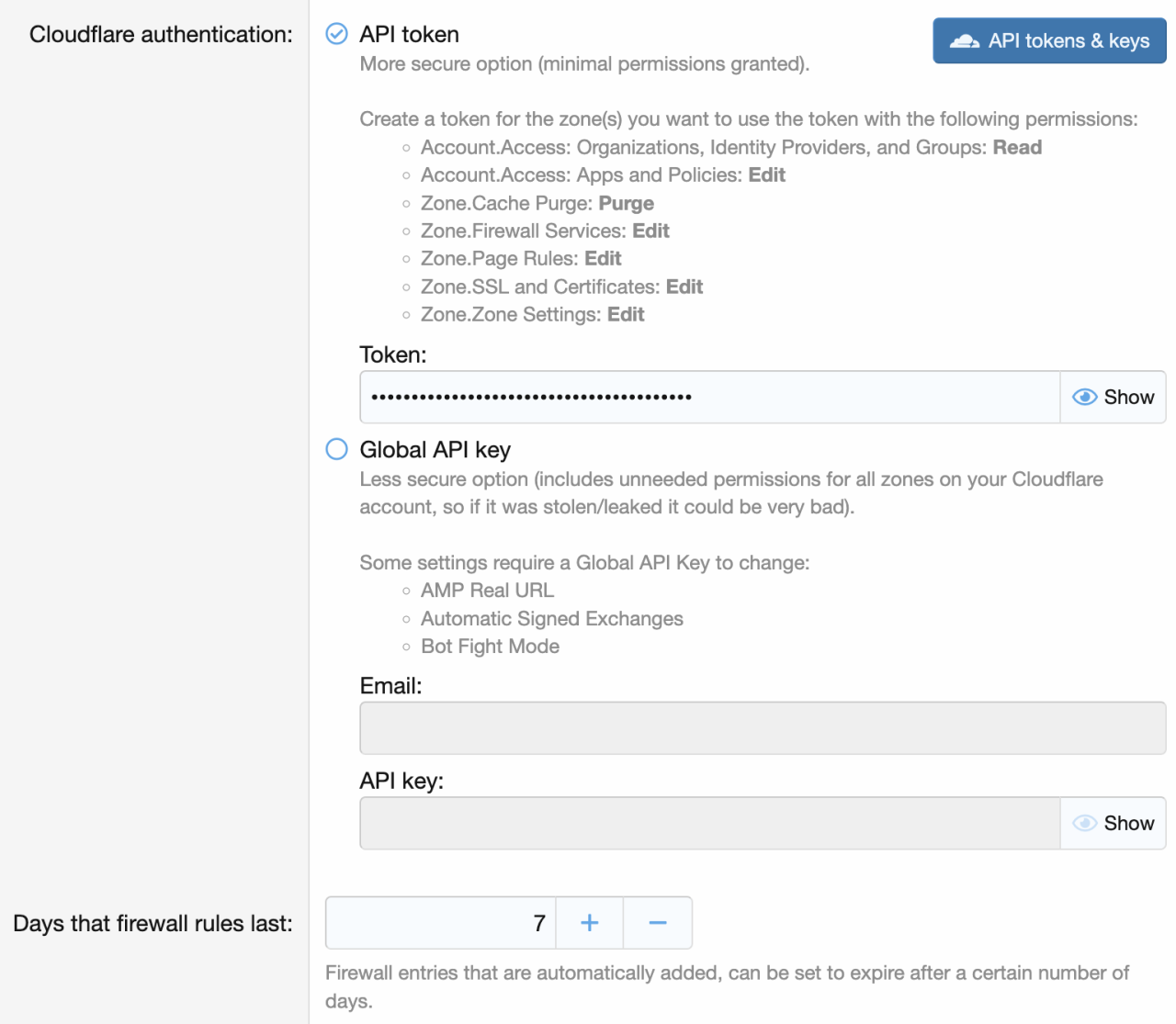 - Changed wording of "API tokens & keys" to "API tokens" (no longer allowing global keys, only API tokens)