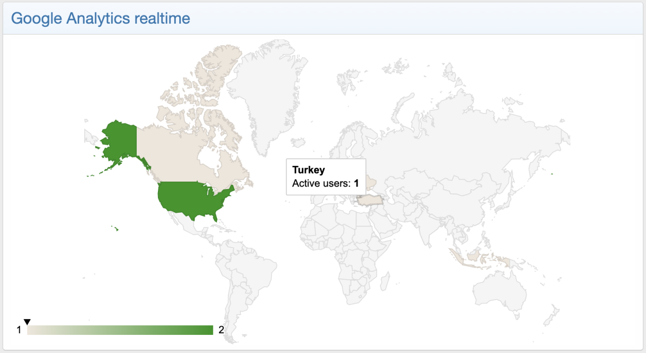- Realtime map showing the countries users currently on your site are in