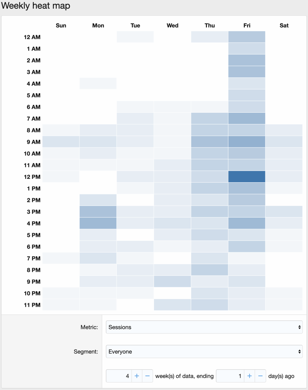 - Weekly heat maps