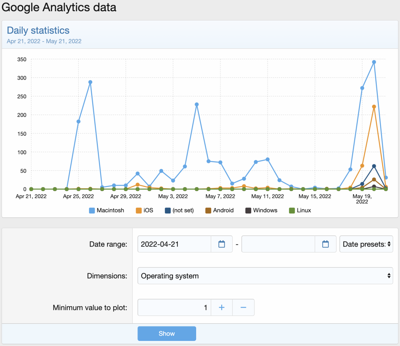 - Raise the "all time" start date for charts to 2016 (Google API can only go so far back without throwing an exception)