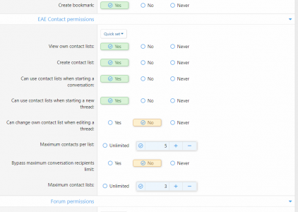 - admins can also set the permissions to where contact lists can be used: threads only, conversations only, or both, per user group