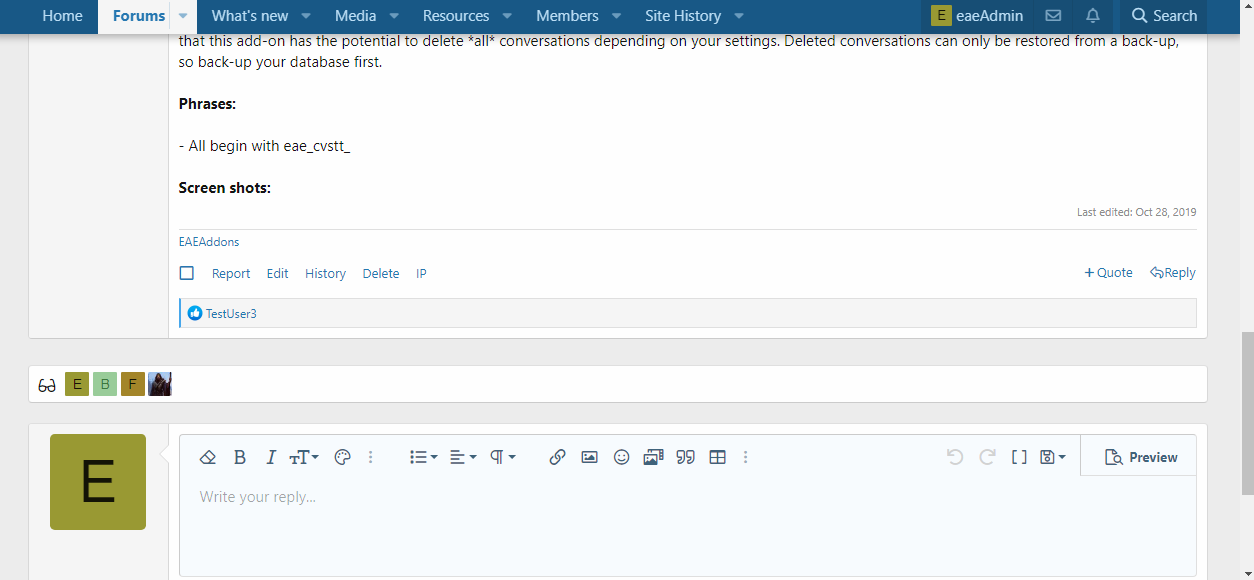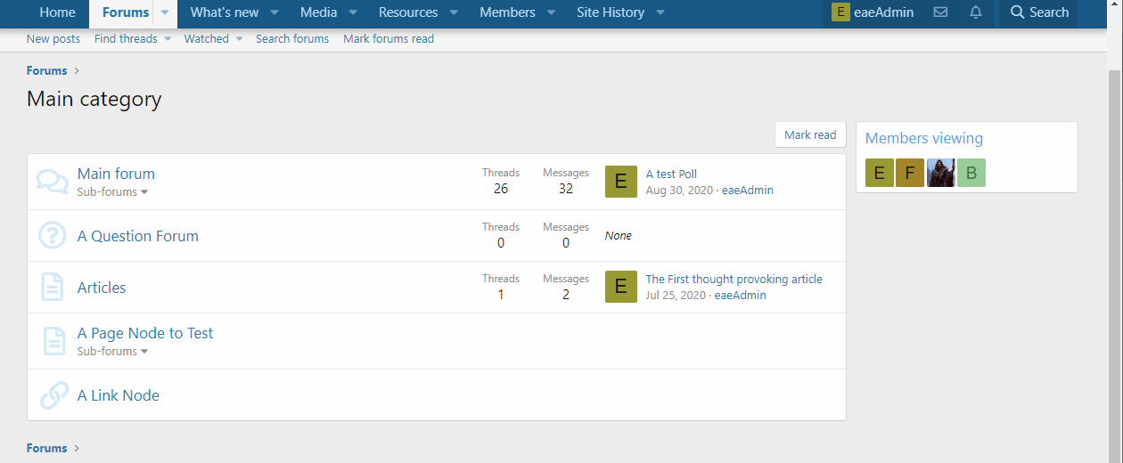 This add-on keeps track and displays where members are viewing in categories, pages, forums, and threads. On forum home, you may choose to display the members avatar, username, or just the grand total of viewers (clicking the total will open an overlay that displays the members viewing that section of your forum). The data is displayed in a footer within each category, or under each section that does not have a parent category.