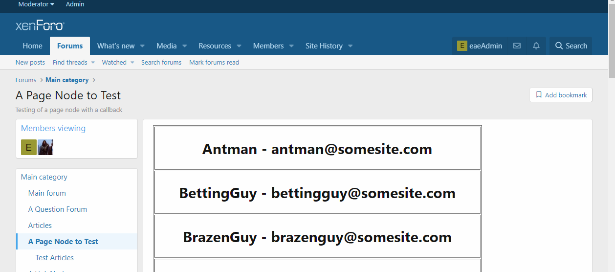 On forum home, you will see in the footer of Pets that Joey, Martin, and Anna are all viewing somewhere within this category. If you enter Cats, no one will be listed as viewing that section. If you go to Dogs, you will see Joey, Martin, and Anna are viewing that sub-forum. If you enter Small dogs you will now just see Joey, and Martin are viewing that sub forum. And so on.