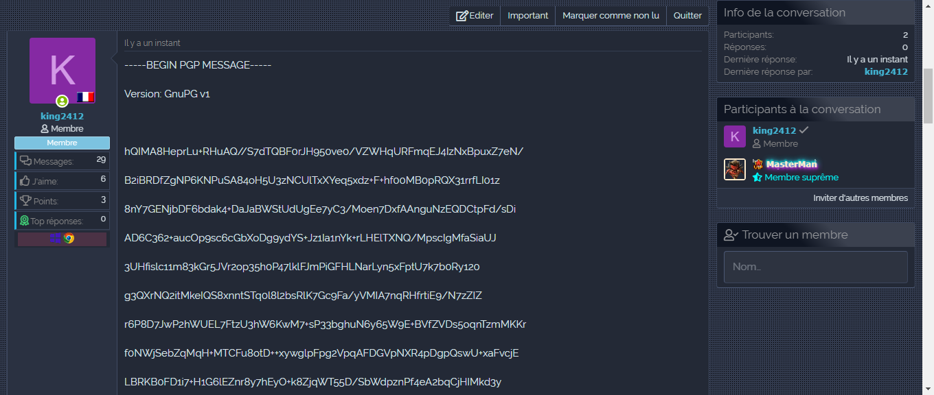 Bonjour jai un souci au niveau des mp dans xenforo , sur mon forum nous parlons beaucoup en mp chiffrer et le soucis c est que je copie puis que je colle un texte