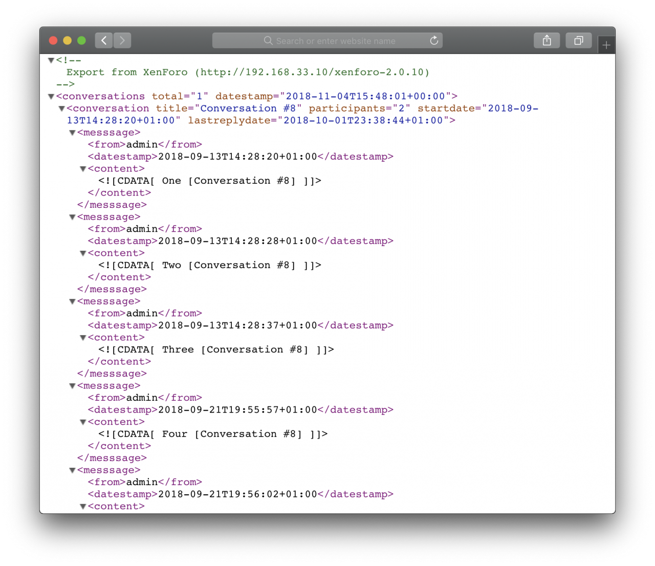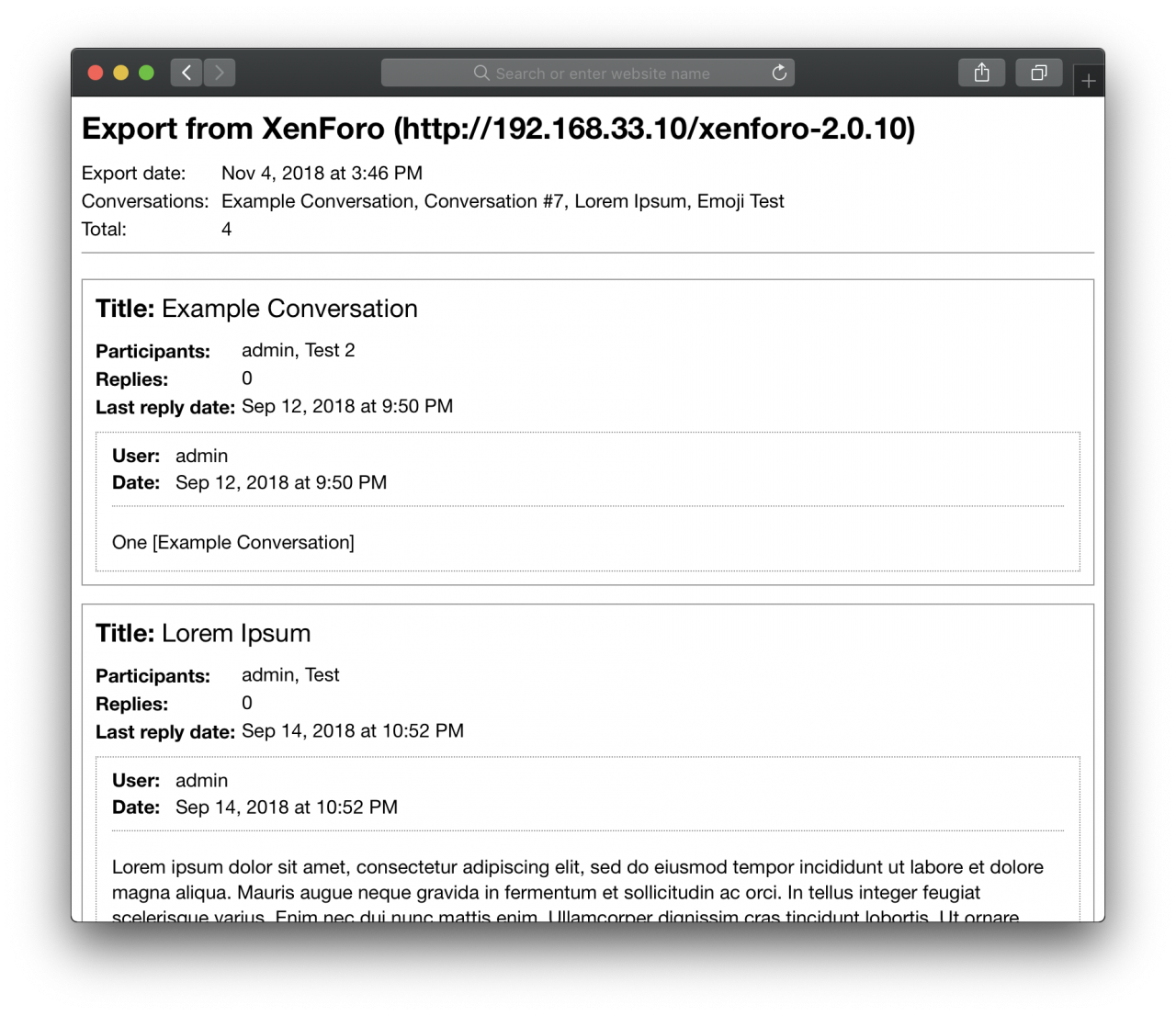 This add-on allows your users to export their conversations for offline reading in a variety of different formats, including, HTML, XML and plain text.