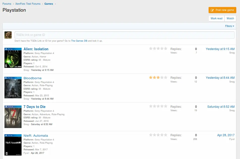 - Ability to search Genre, Platform and Title in forum thread list.
