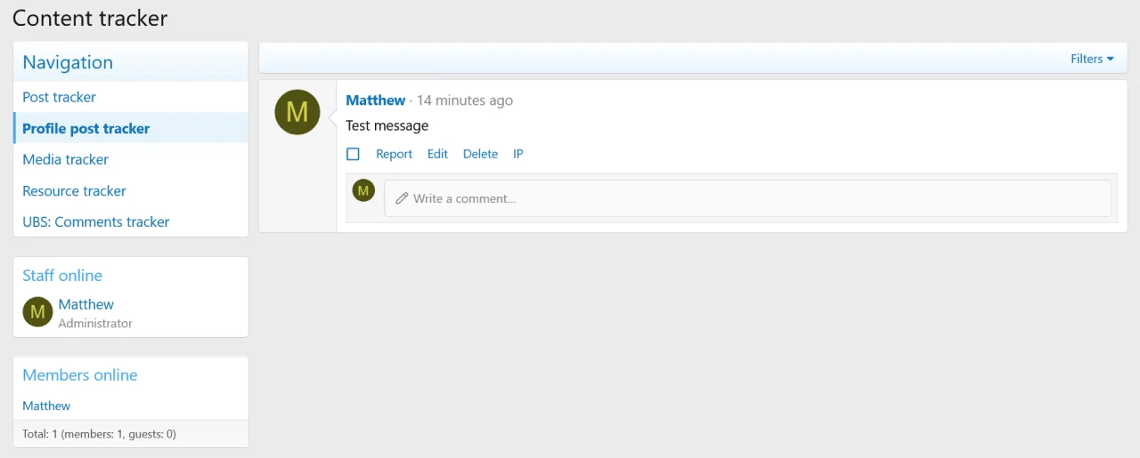This add-on tracks content from admin-defined user groups. It's essentially a Staff or Dev Tracker where you can track content from whichever user group(s) you select.