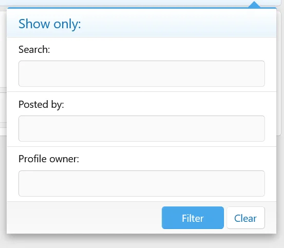 There some basic filter options, including basic search, has attachment option, and search by username. FYI, the media filter does not include the attachment option.
