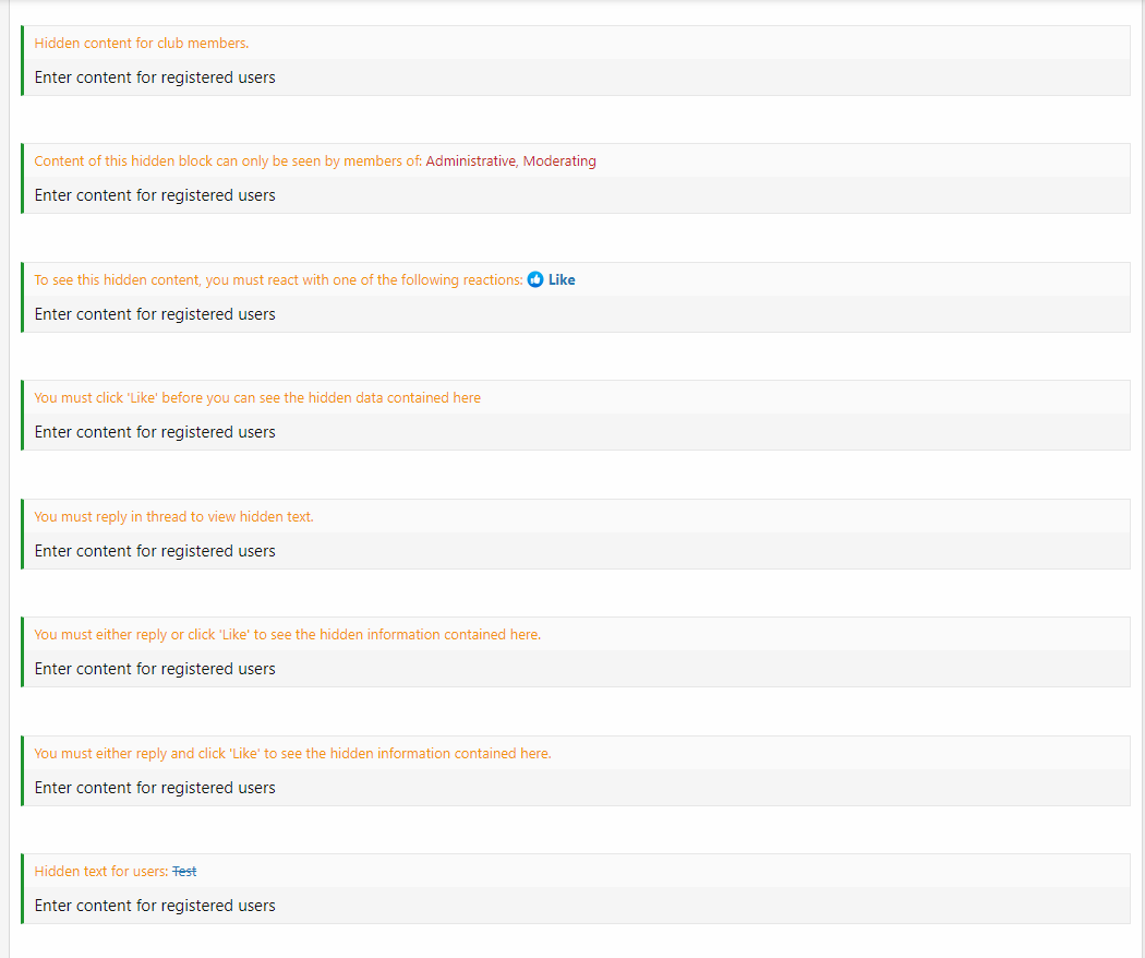 Hidden content add-on for the XenForo 2 forum. Supports 16 bb codes for hiding according to various parameters