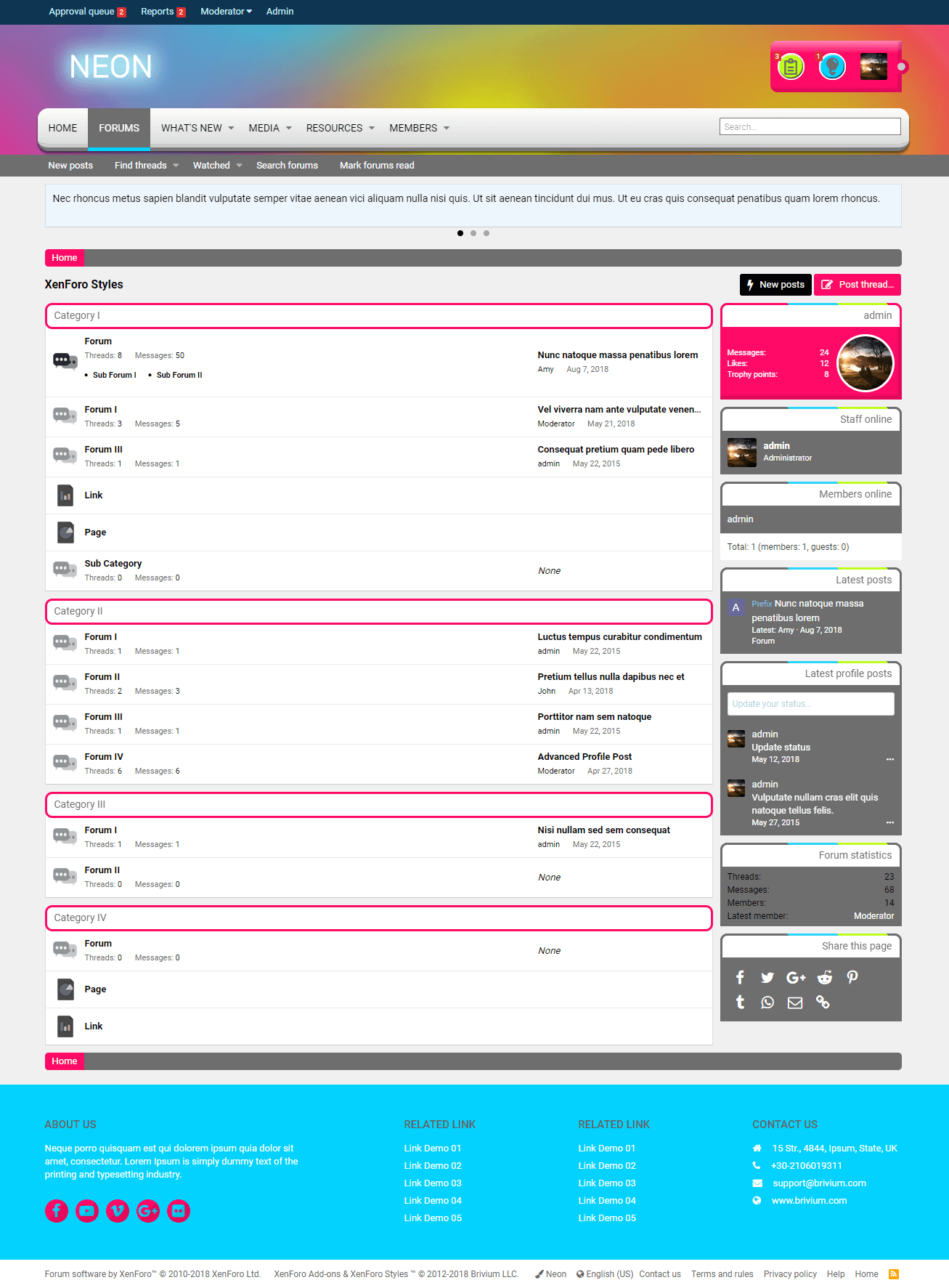 Neon is a free XenForo 2 style designed by Brivium, light and colorful. Télécharger V2.2.13 : Pour consulter le contenu, vous devez : Se connecter ou S'inscrire. XF 2.2 Zinc - Style Brivium 2.2.13 XF 2.2 Nickel - Style Brivium 2.2.13