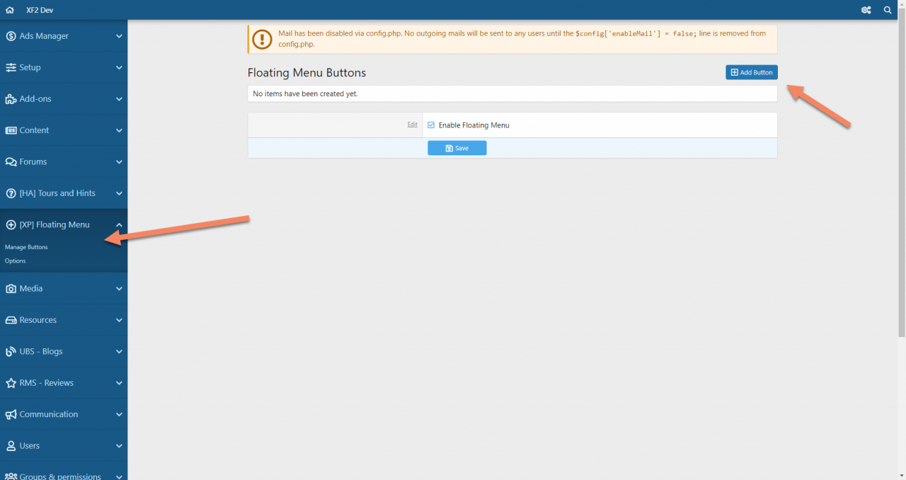 Easily add a floating menu to your XF2 site.