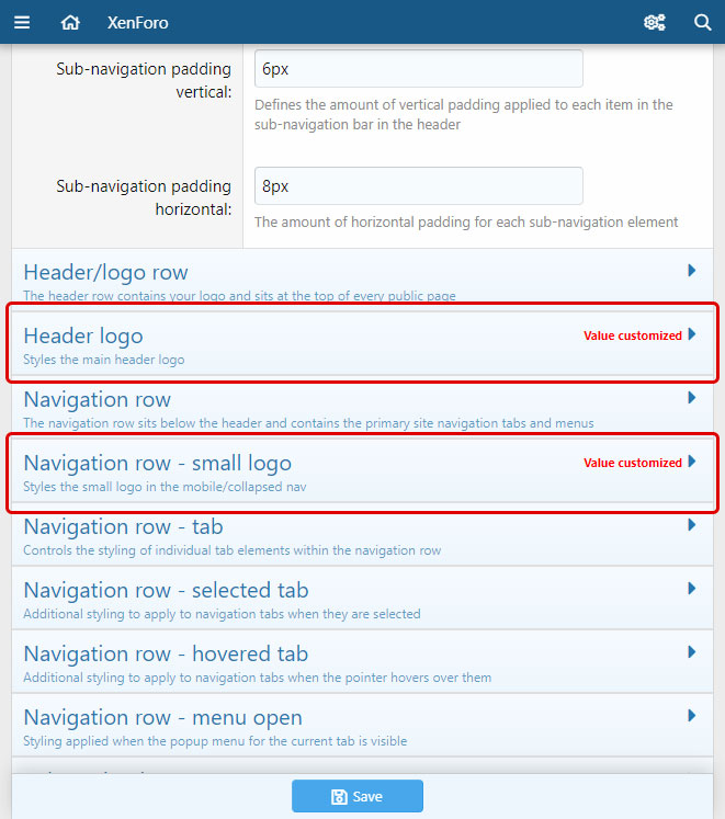 - Specify optional URL path for the navigation small logo image (if left blank, it will use the main logo as normal in the mobile nav)