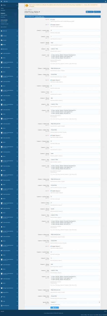 With this add-on you can have Multiple Pages to show Prices Tables. Everything is under control of you and you can changes all the texts, number of columns, number of rows, appearance and all other things.