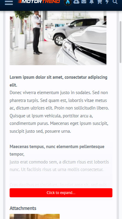 This simple addon collapses long areas of content on mobile devices into an expandable block and "Read more..." button. This feature is very similar to the widely seen "Read more" links on Wordpress blogs and many articles on the web.