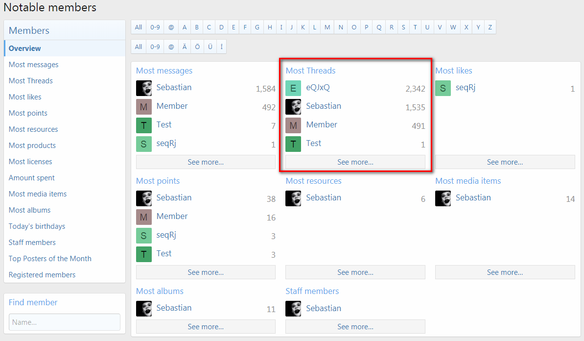 - Notable Members Page "Most Threads"