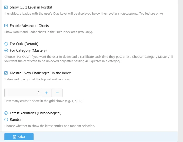 - Mandatory Category: It is no longer possible to create a quiz without selecting a category. The system throws a clear error message instead of creating "orphan" quizzes.