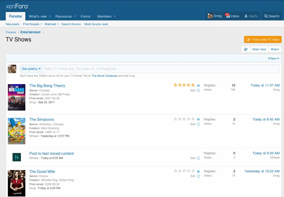 - Choose multiple forums as TV show forums.