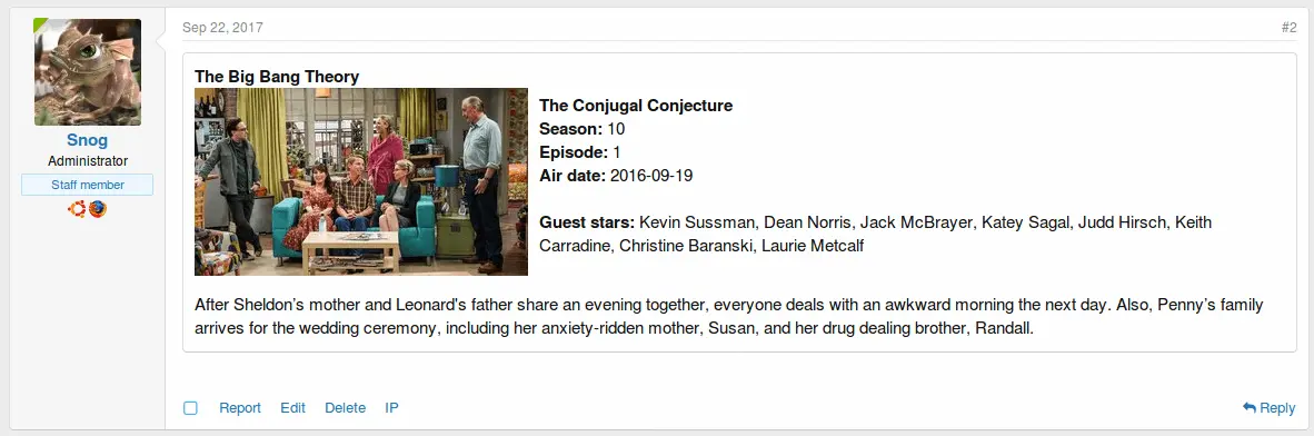 - Automatically populates the top of the first post with the TV show poster and information.