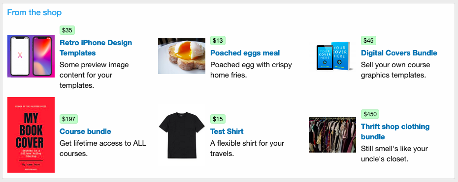 A simple byline will appear under blog posts with pertinent details about the post right from the widget. When showing WooCommerce products, the byline will be replaced with the product price.