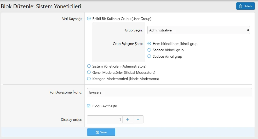 Create blocks and choose a data source:- User Groups