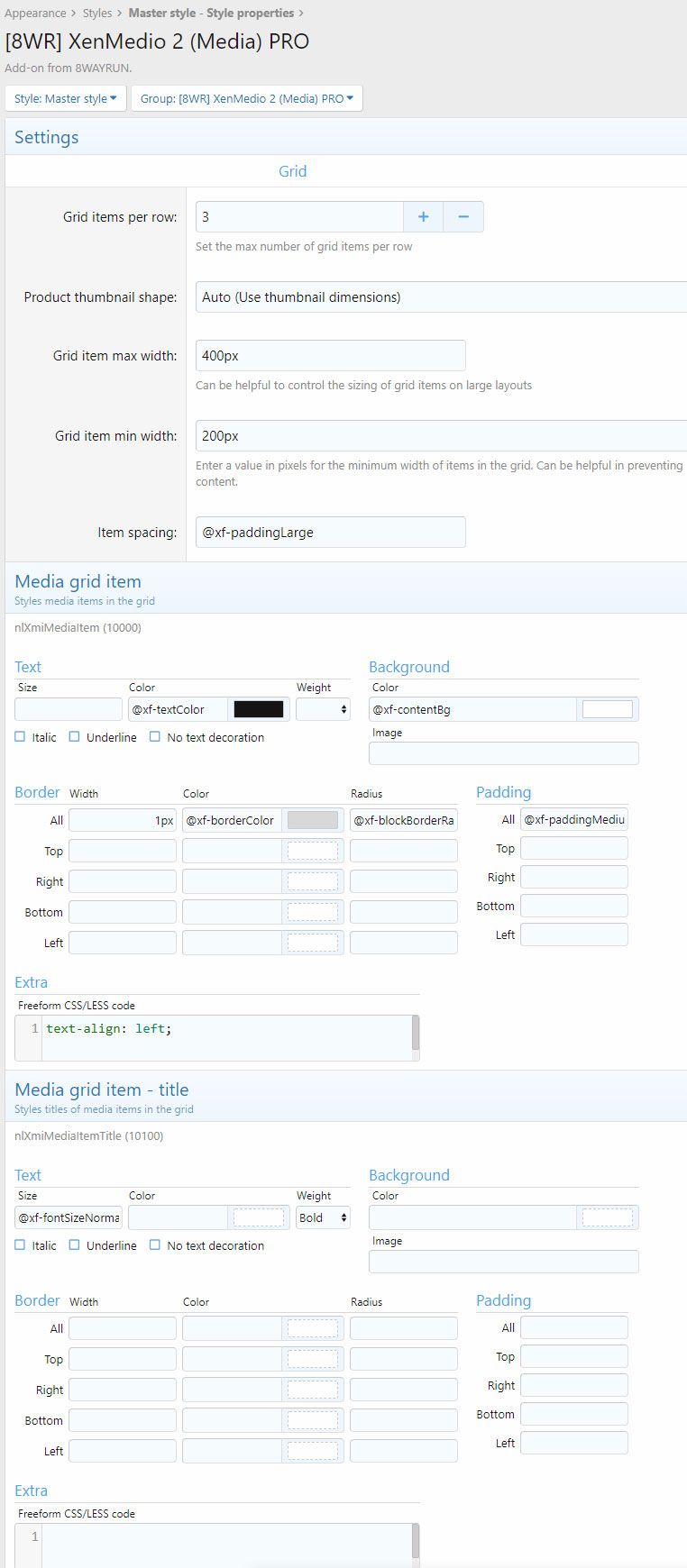 Style Properties -> [8WR] XenMedio 2 (Media) PRO - Set number of items per row, min/max item widths, item spacing etc