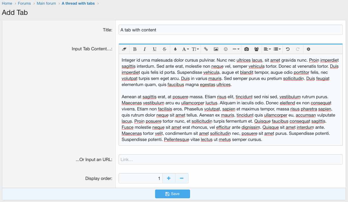 Very simple to use, it lets your user create as much tabs as they want through a few clicks within the thread. Tabs can either be pure text content input by the user or links.